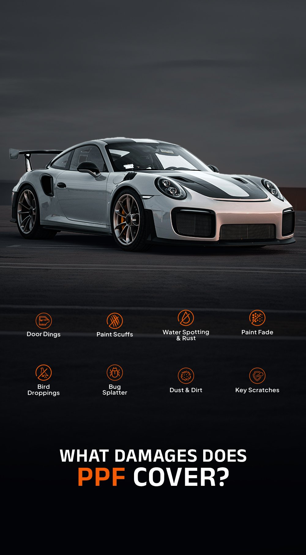 PPF provides a robust, impact-absorbing barrier against flying gravel, rocks and debris on your hood and bumper that occur with daily driving.
